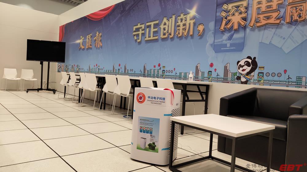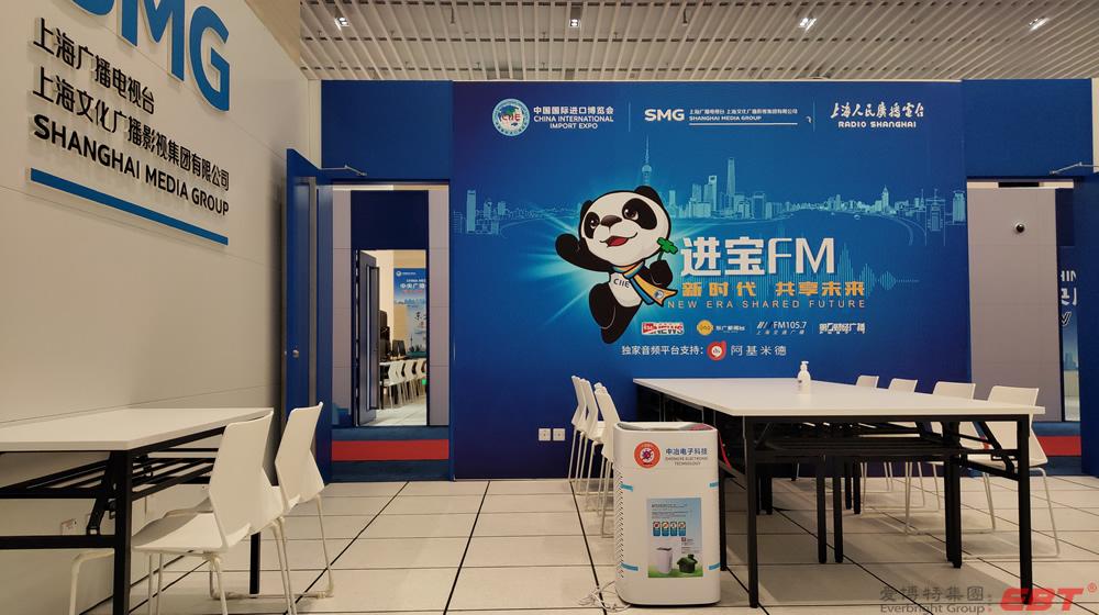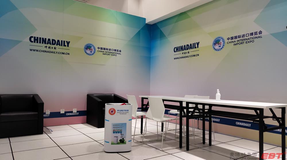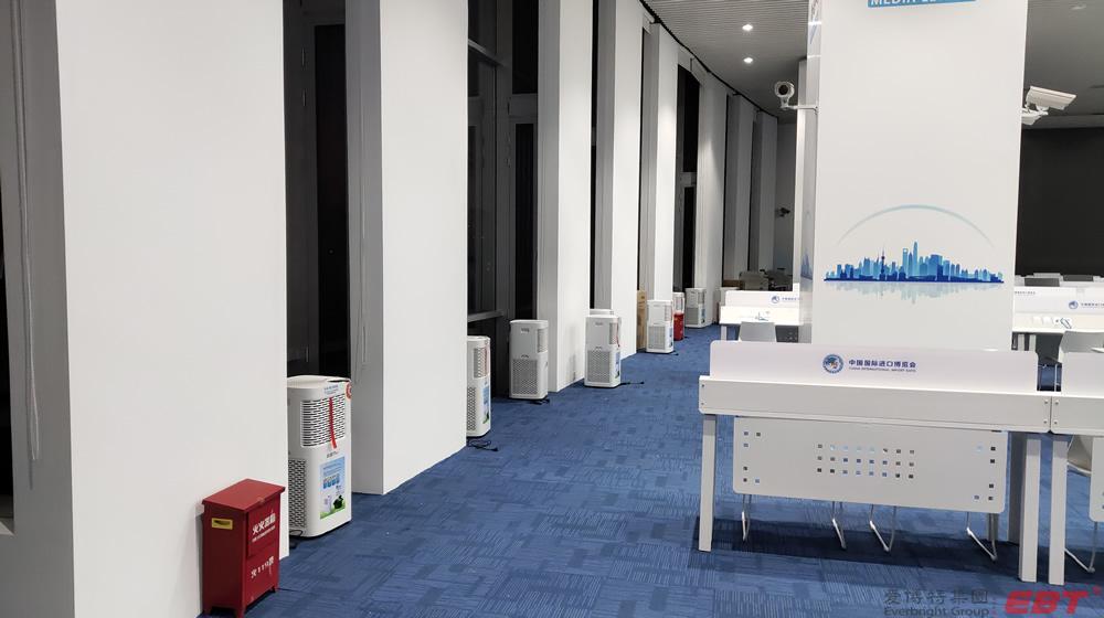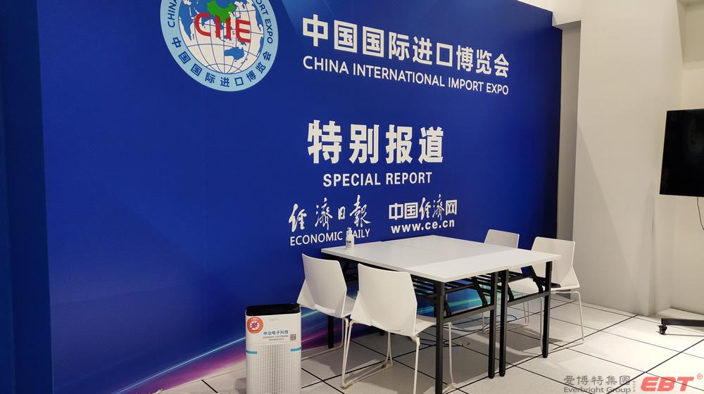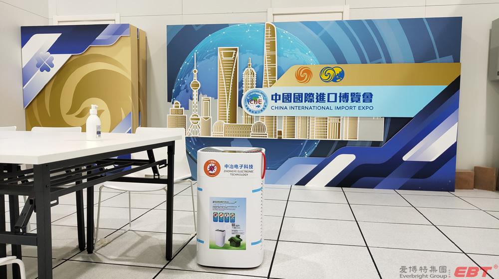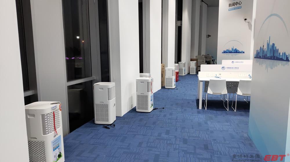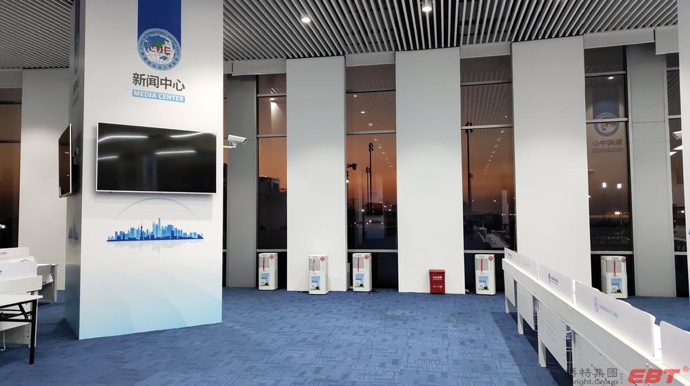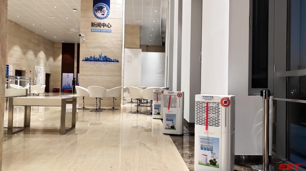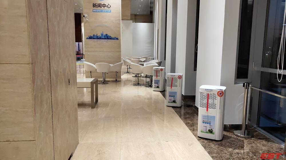 純物理方法殺滅新冠病毒的空氣凈化器在國家會展中心(上海)第三屆進博會10000平方新聞中心安裝完畢,以及新聞中心全體工作人員人手一份的殺滅新冠易呼吸口罩伴侶已送到指定地點,寧波中冶電子科技公司為進博會新聞中心安全防疫保駕護航!